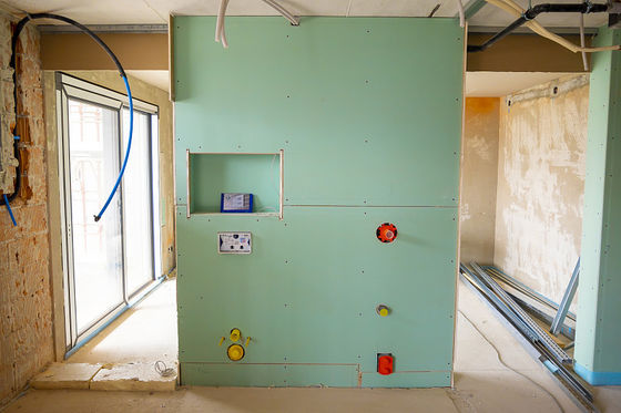 防水石膏ボードに地上水の吸収の≤ 160g/m2および約5%の吸水率の高い防水性能が、ある。