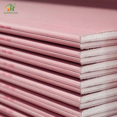 耐火石膏ボード: ピンクの外観で、建築用石膏、軽量材料、無機耐火繊維、添加物で作られています。間仕切りや天井に強力な耐火性能を提供します。